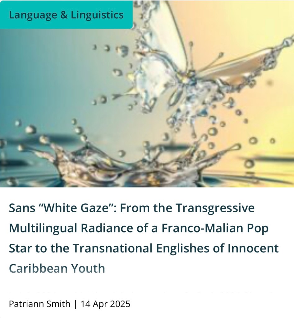 Thanks to Cambridge University Press, my blog post “Sans “White Gaze”: From the Transgressive Multilingual Radiance of a Franco-Malian Pop Star to the Transnational Englishes of Innocent Caribbean Youth” is now available in Fifteen Eighty Four.